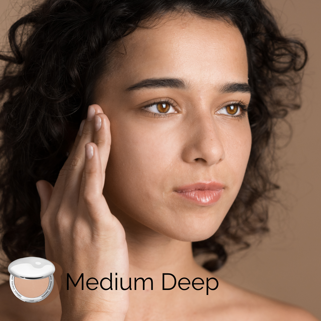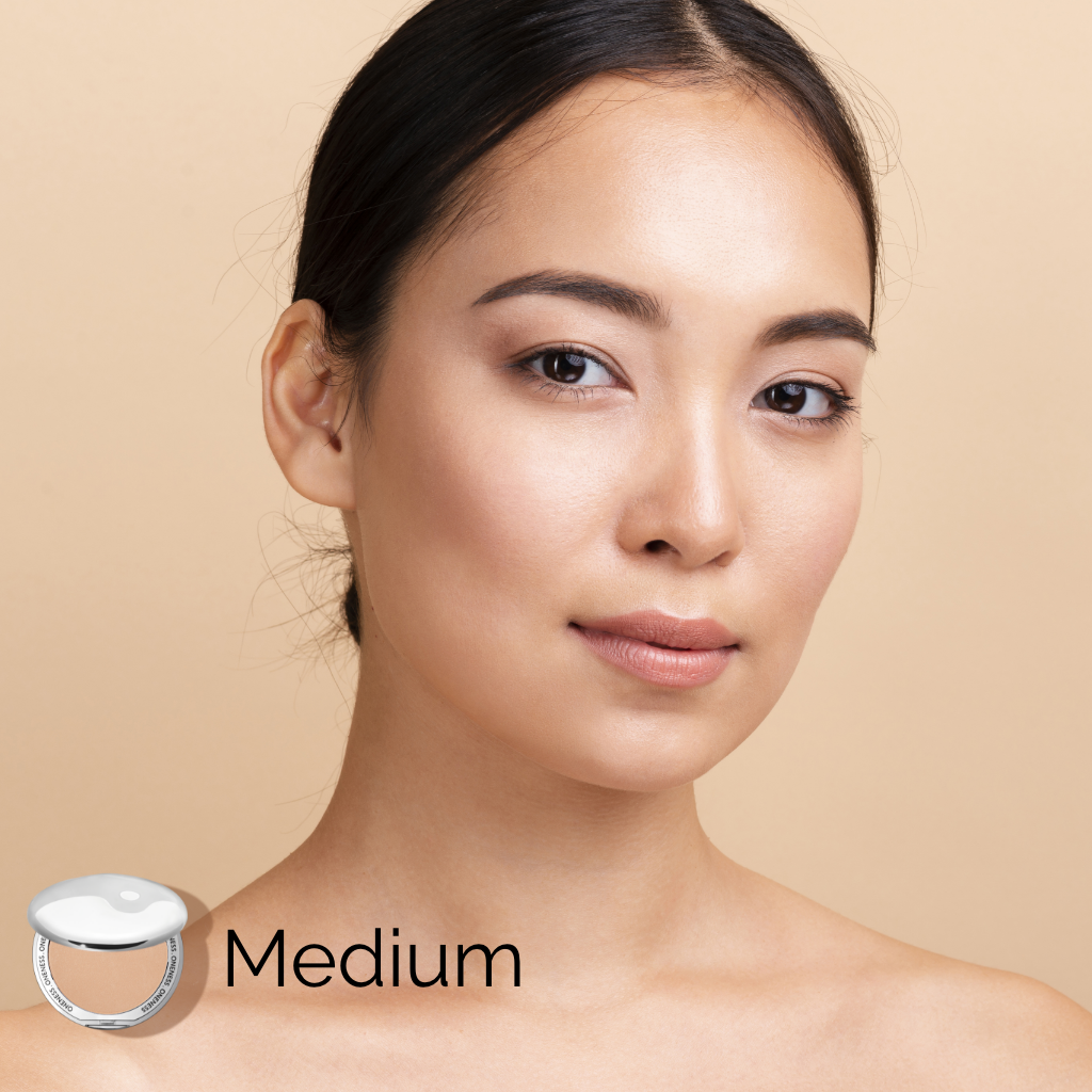 It can be worn to mattify or warm the complexion or can be applied on top of a foundation to set your makeup.
