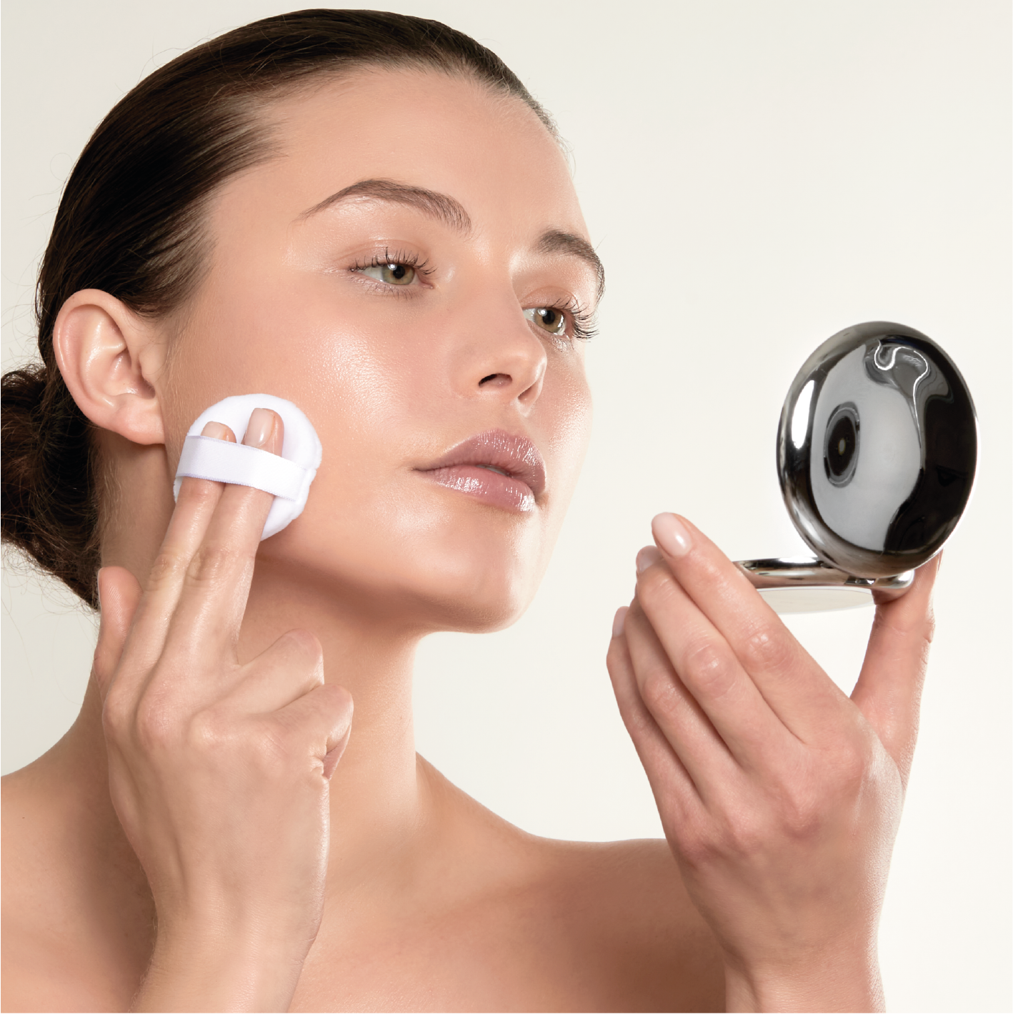 For a matt finish, use a soft cushion to apply on your skin. Use it alone for a light matt complexion or for a more sophisticated look, apply it on top of make-up to set and bathe in a luminous matte glow.